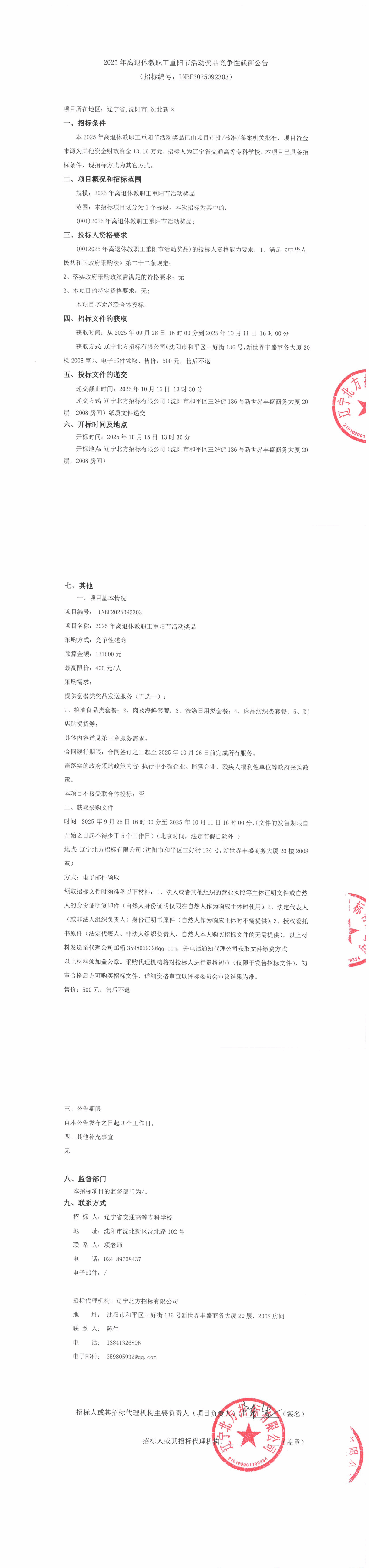 2025年离退休教职工重阳节活动奖品竞争性磋商公告