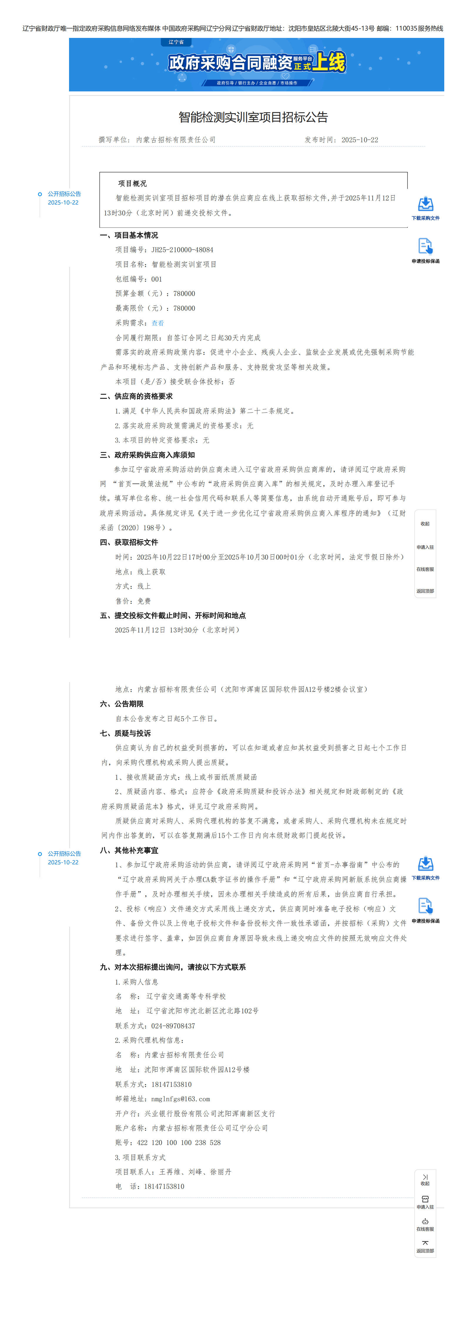 智能检测实训室项目KYTY.COM开云体育(中国)科技公司(LNCC2025132)