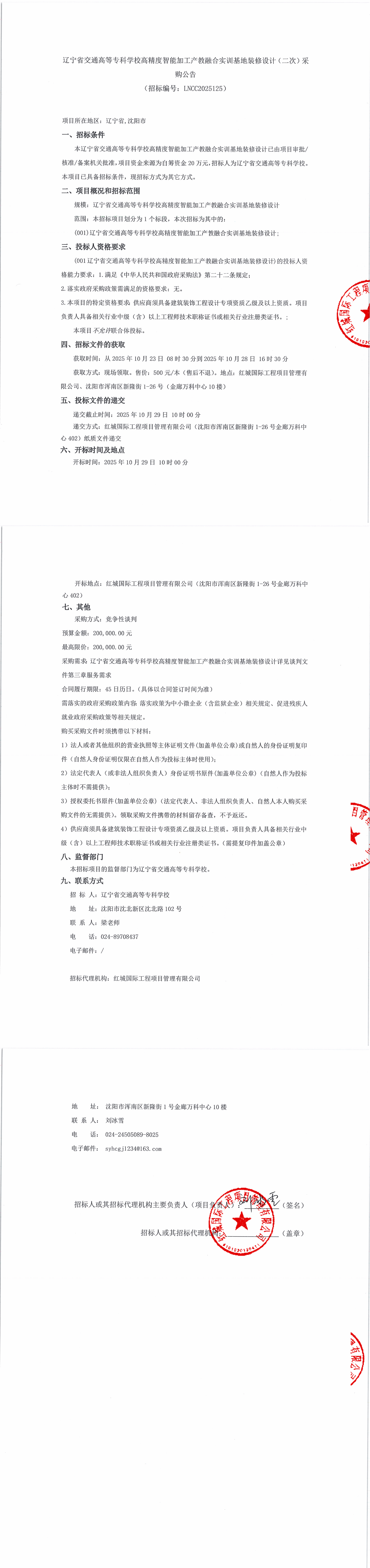 KYTY.COM开云体育(中国)科技公司高精度智能加工产教融合实训基地装修设计(二次)采购公告(LNCC2025125)