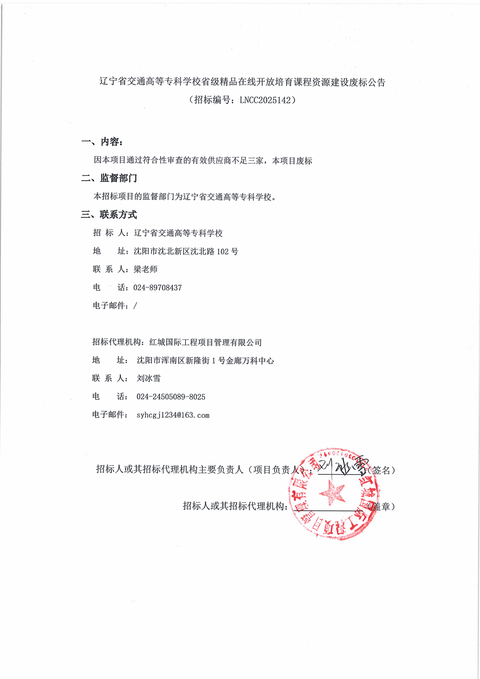 省级精品在线开放培育课程资源建设项目废标公告(LNCC2025142)