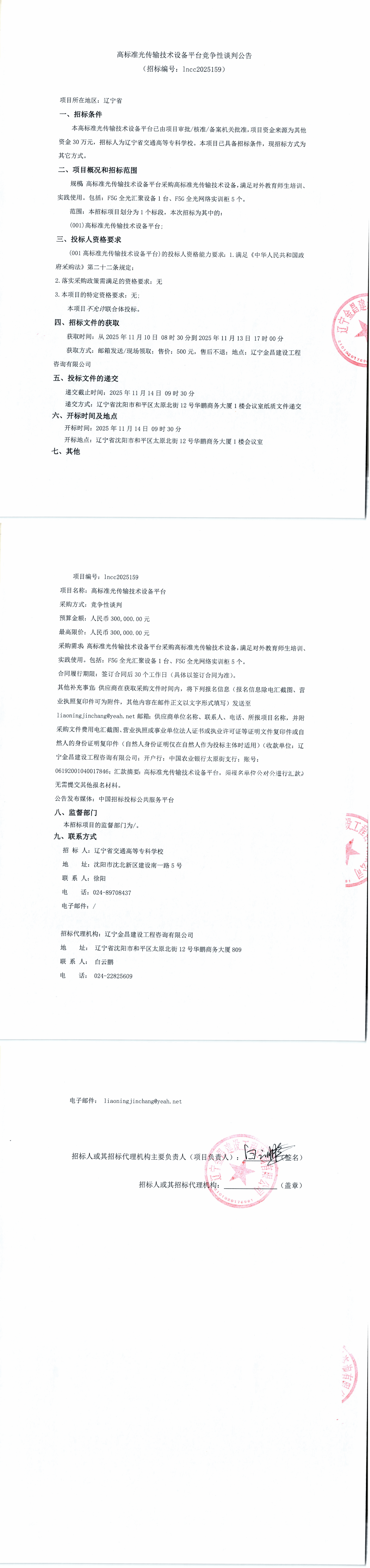 高标准光传输技术设备平台项目KYTY.COM开云体育(中国)科技公司(LNCC2025159)