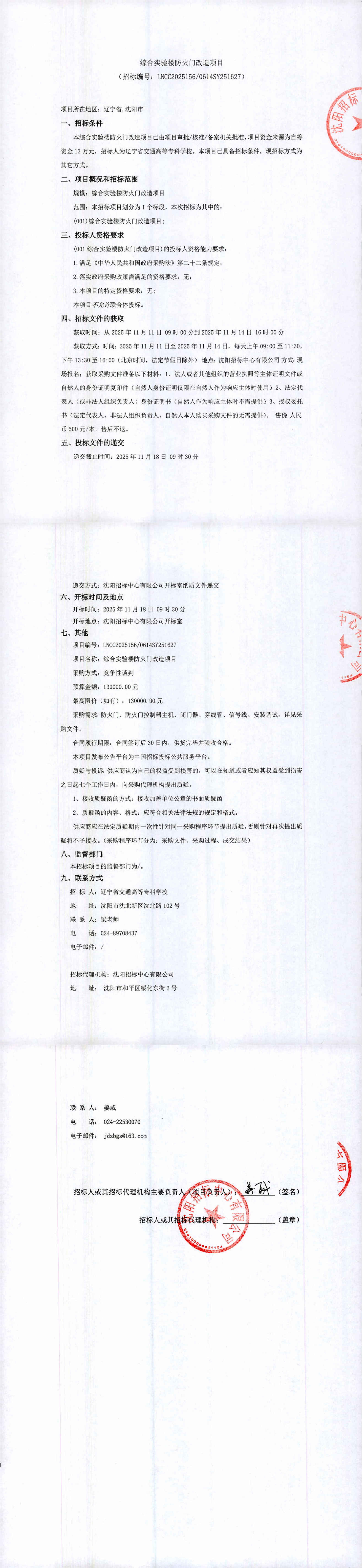 综合实验楼防火门改造项目KYTY.COM开云体育(中国)科技公司(LNCC2025156)