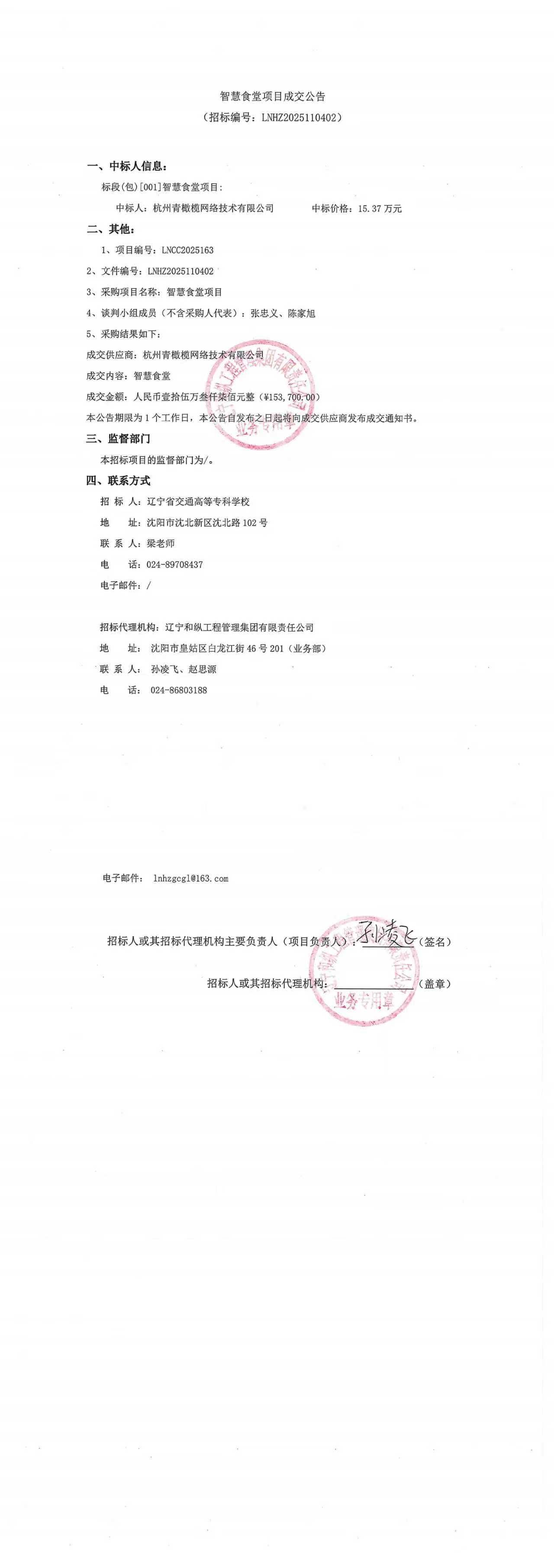知行楼固定桌椅采购项目成交结果变更公示(LNCC2025184)
