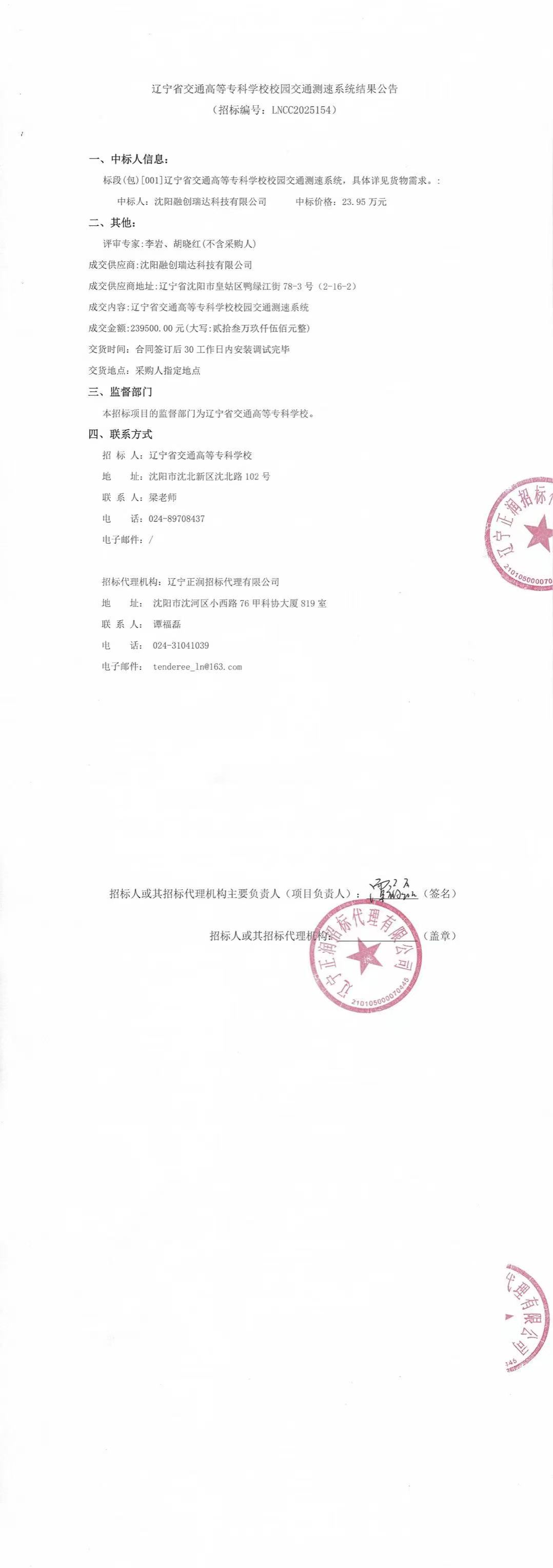 KYTY.COM开云体育(中国)科技公司校园交通测速系统结果公告 (LNCC2025154)