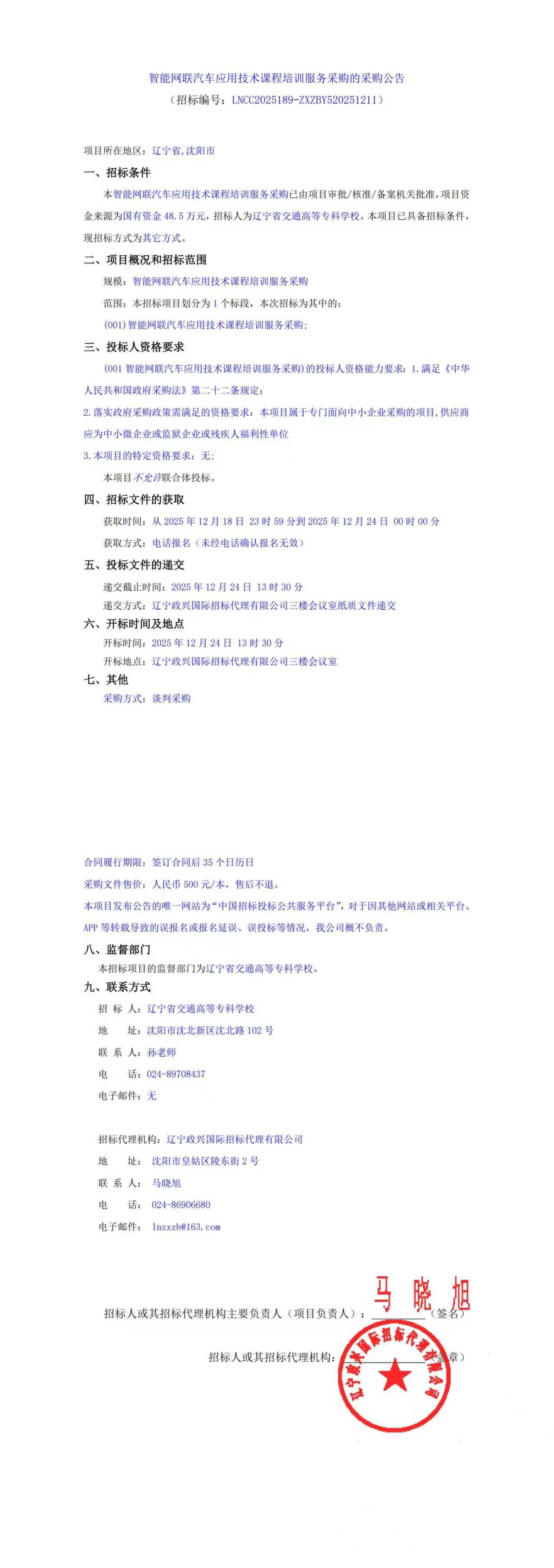 智能网联汽车应用技术课程培训服务采购的采购公告(LNCC2025189)