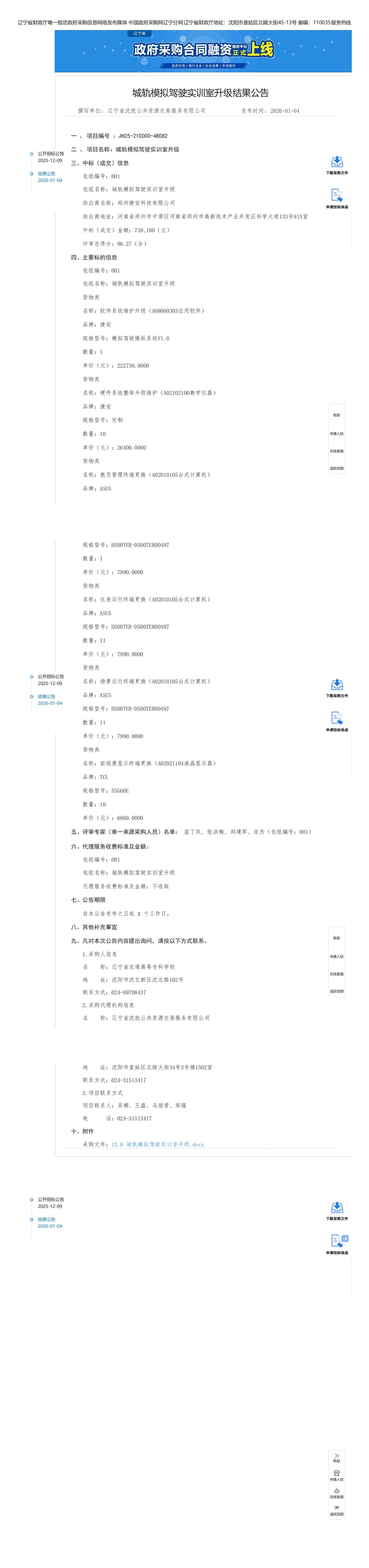 城轨模拟驾驶实训室升级结果公告