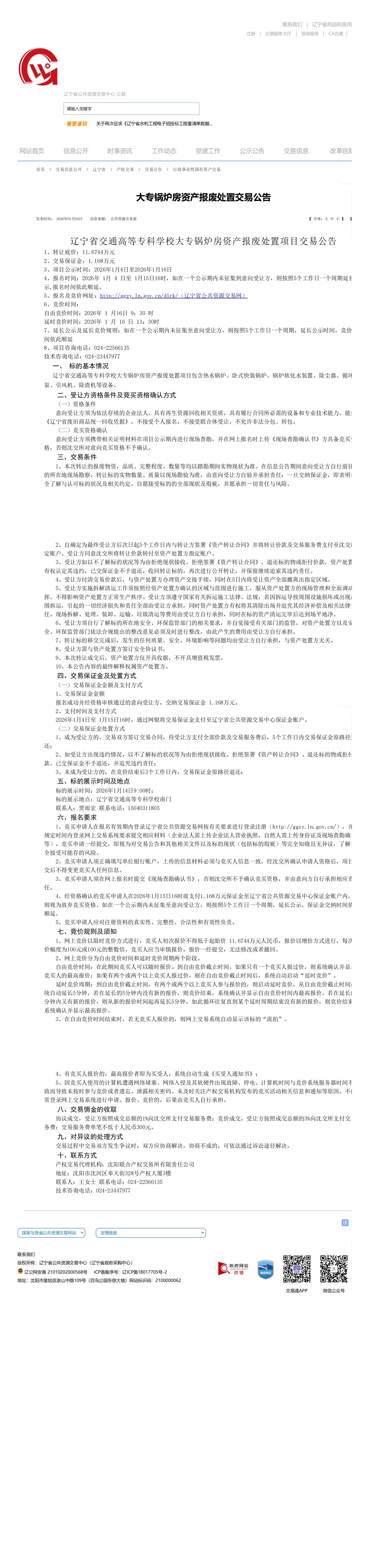 KYTY.COM开云体育(中国)科技公司大专锅炉房资产报废处置项目交易公告