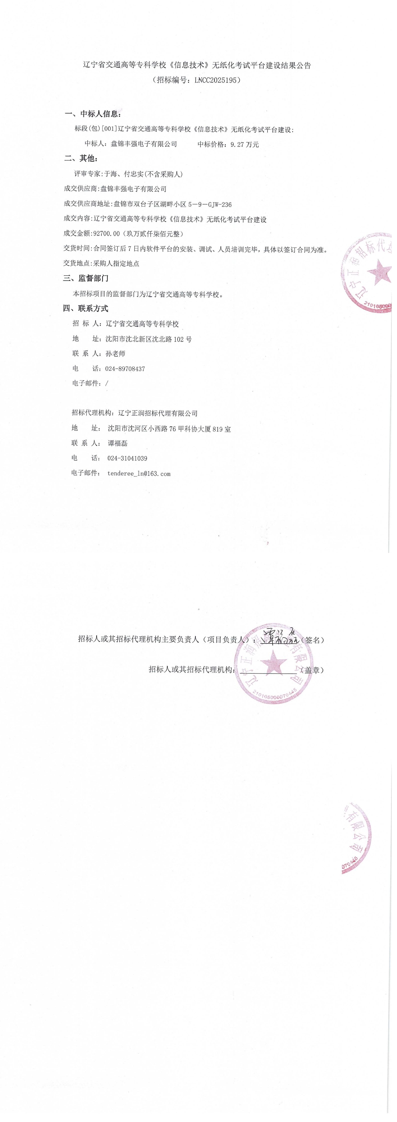 《信息技术》无纸化考试平台建设项目采购结果公告(LNCC2025195)