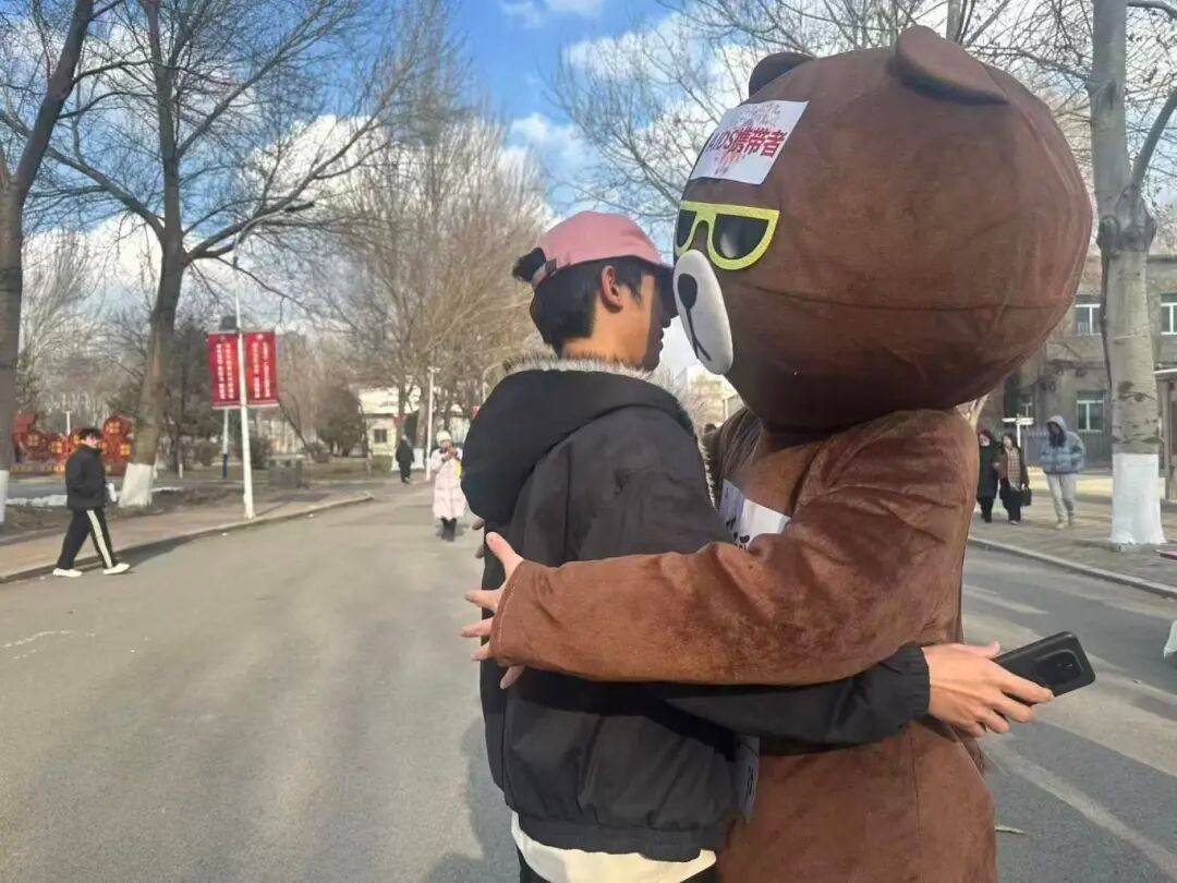 在“爱的拥抱”互动体验区,志愿者身着“艾滋病患者”主题人偶服装,主动向同学们发出拥抱邀请。每一个温暖的拥抱都在打破隔阂与误解,志愿者现场讲解艾滋病非传播拥抱、共餐、共用物品等非传播途径,引导学生在真切互动中树立平等、包容、关爱的正确理念。